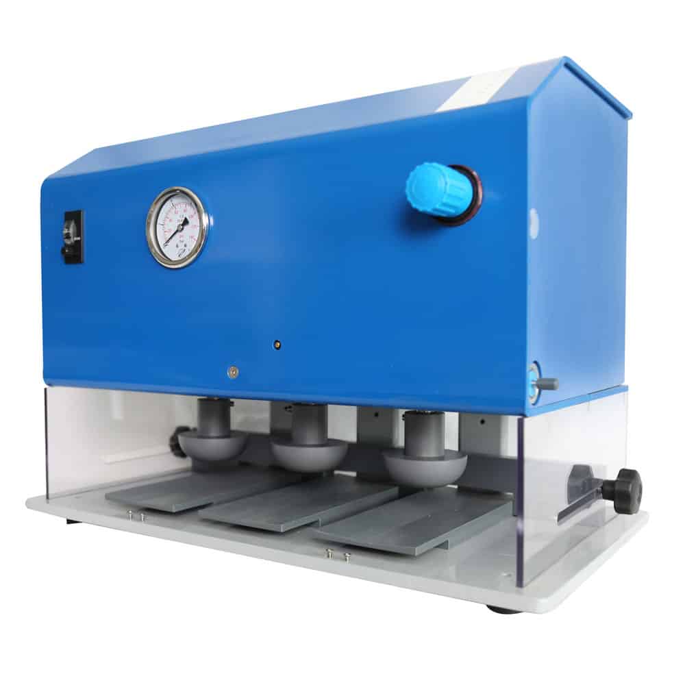 Like the ATS, the ATS 3 is essential for reliable quality control of your welds which may show defects after heat sealing. Theses three different compartments give you the simultaneous control of three similar samples, or even different ones thanks in particular to an independent control of the pressure if each manometer. This is very useful in the event of a high frequency of checks or in case of a significant spot check following a complaince problem. This is very useful in the event of a high frequency of checks or in case of a significant spot check following a complaince problem.