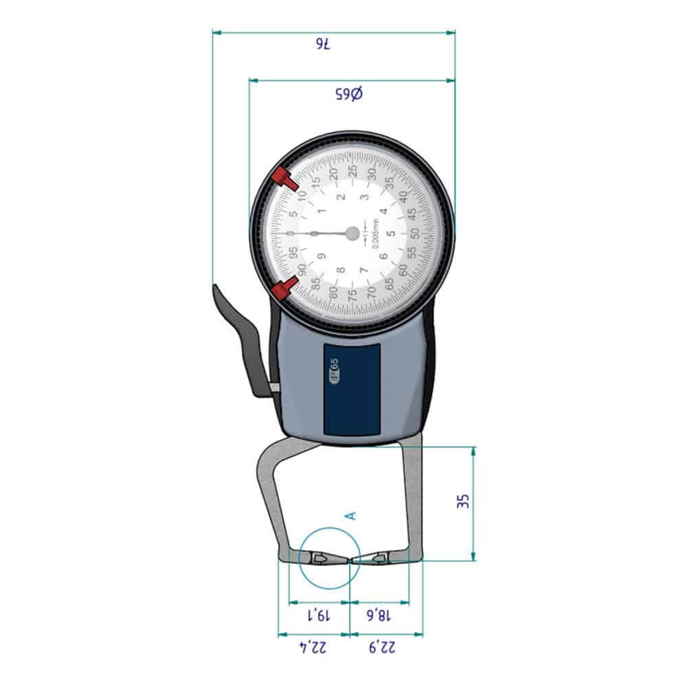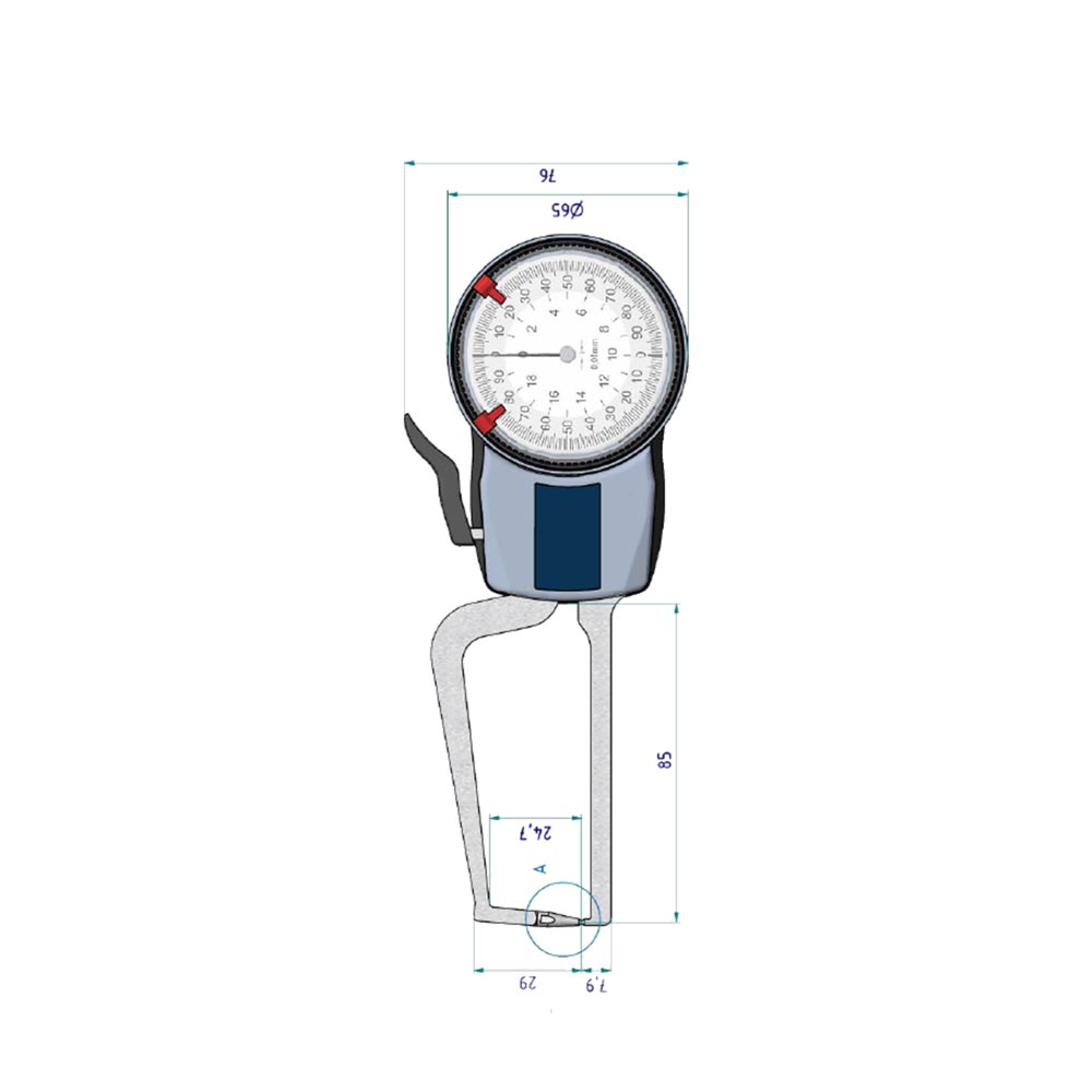 Un medidor de espesores analógico es un instrumento mecánico utilizado para medir con precisión el espesor de diversos materiales. Dispone de un puntero que indica la medida obtenida cuando los botones del aparato están en contacto con el objeto a medir.