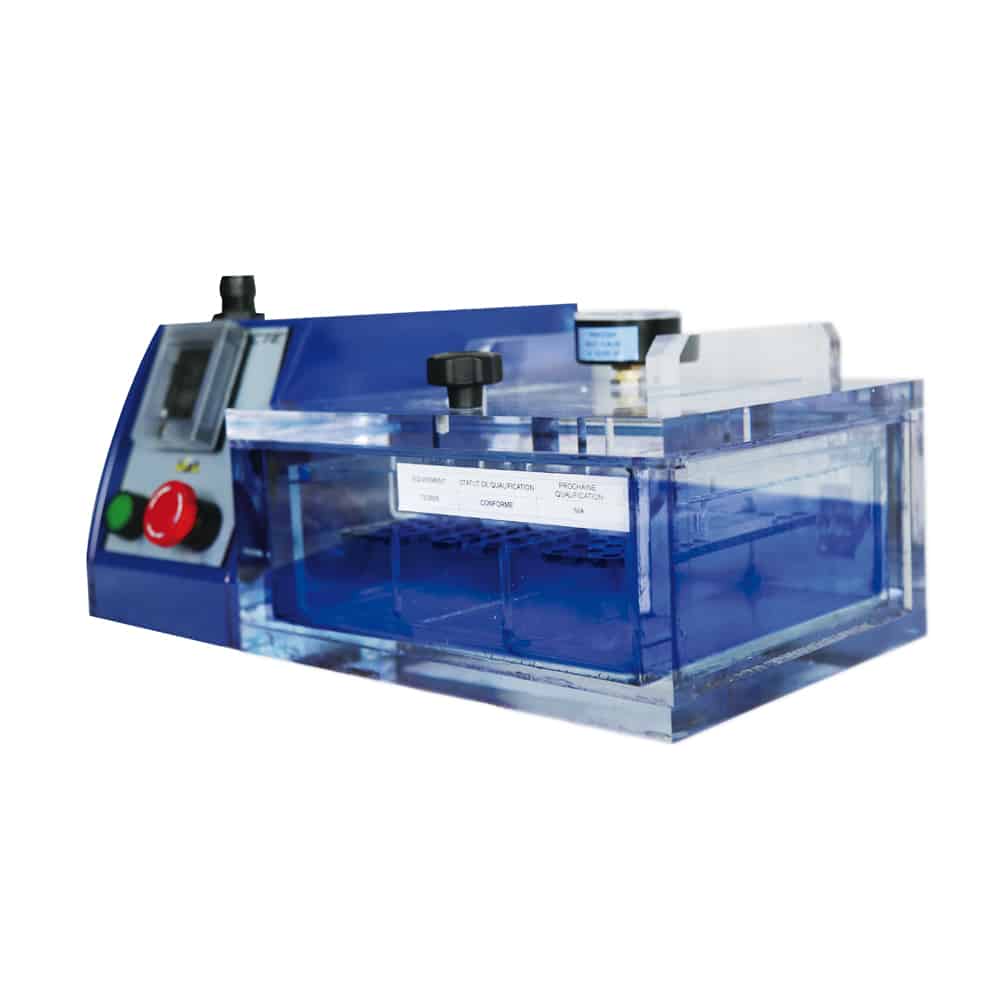 Permite comprobar la estanqueidad de las muestras tipo blíster o bolsa por vacío y gracias a la migración de un producto trazador, llamado azul de metileno.