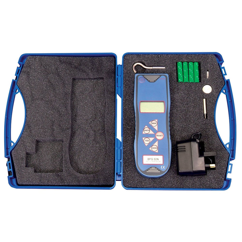 Con capacidades que van de 10 a 2500 N, puede montarse en un banco de pruebas o utilizarse como dispositivo portátil. Es robusto y tiene una precisión de +/- 0,25% de la escala completa.