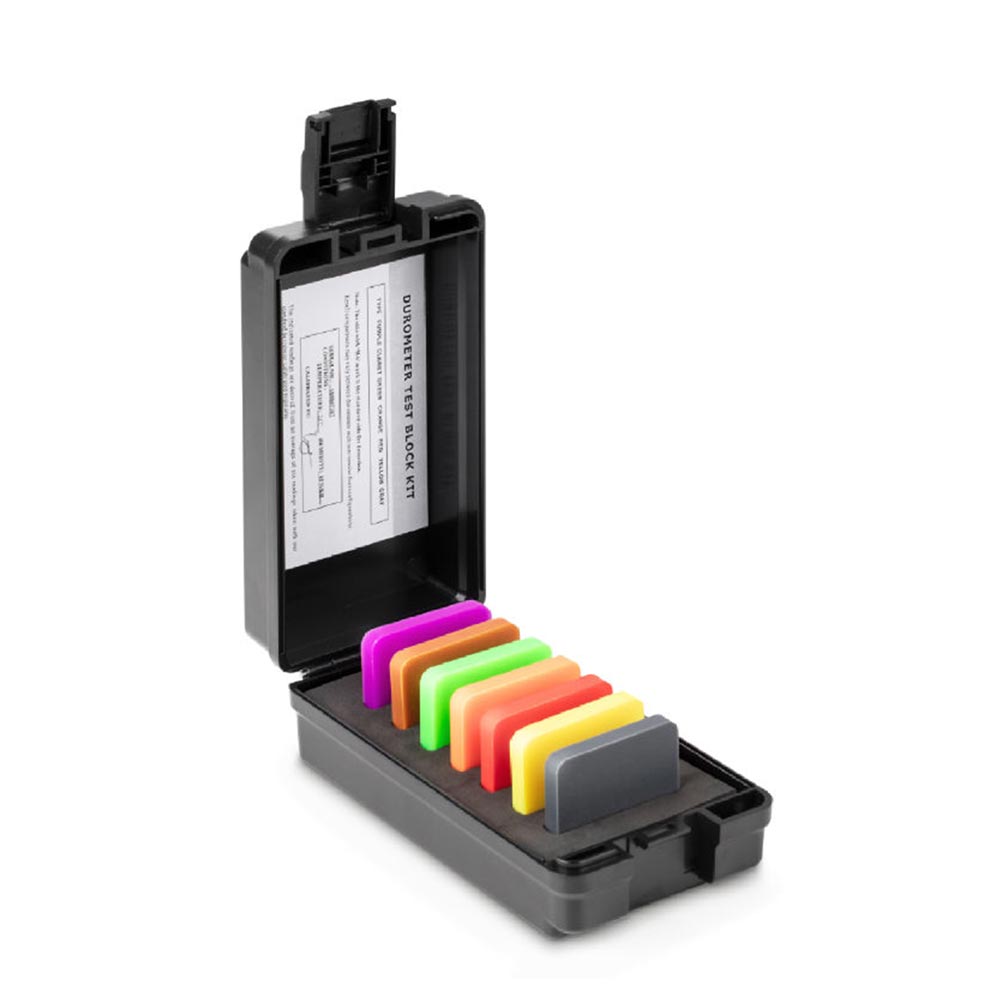- 7 Blocchi di riferimento per la durezza Shore A, tolleranza fino a ± 2HA