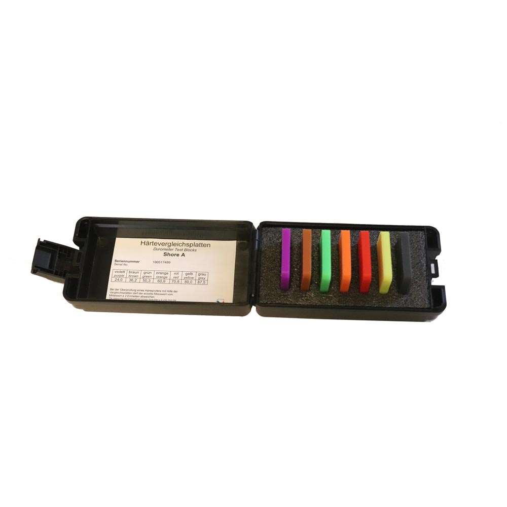 - 7 Blocchi di riferimento per la durezza Shore A, tolleranza fino a ± 2HA