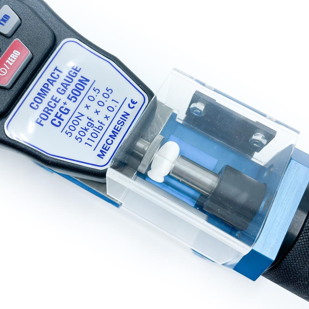 Il sistema DCX consente di misurare in modo preciso e completamente autonomo la durezza delle compresse applicando una forza di compressione. Il carico di rottura viene letto su un misuratore di forza calibrato.