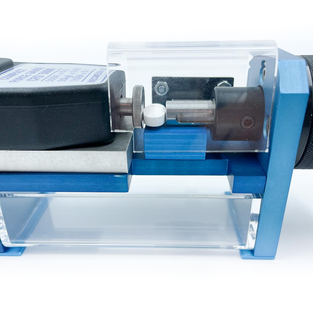 Un anello rotante esercita una forza sulla tavoletta fino a romperla. Un dinamometro con supporto circolare recupera lo sforzo e visualizza il valore di rottura della tavoletta. Dopo la rottura, cade in un contenitore di raccolta basso. Un coperchio di protezione impedisce schizzi accidentali sull’operatore.